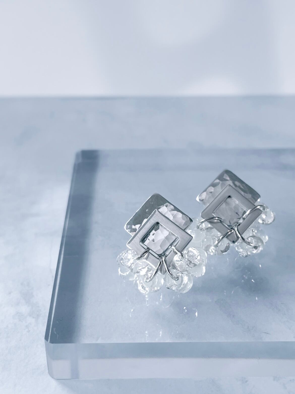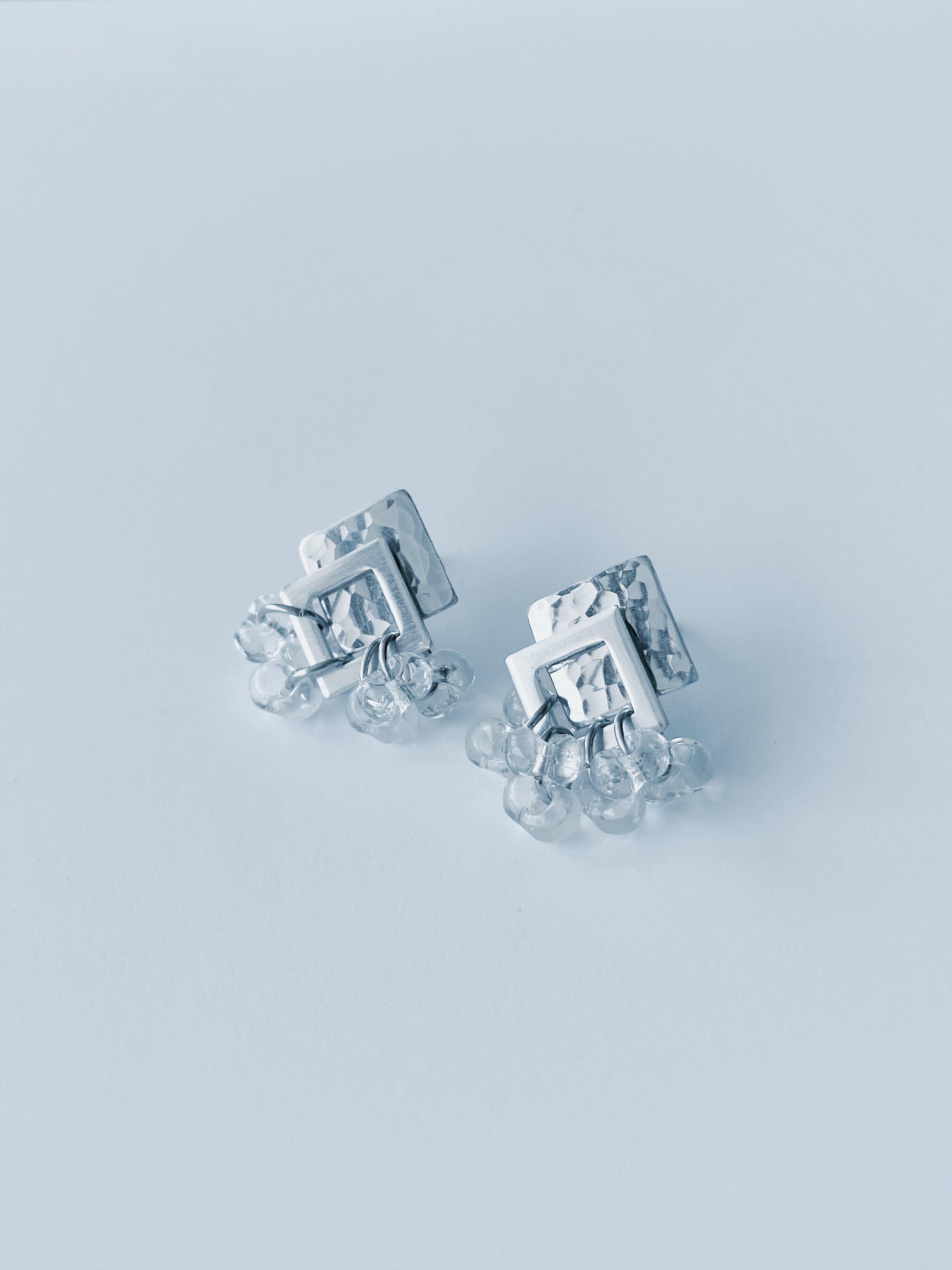 double square × glass beads <鎚目テクスチャー> ピアス&イヤリング