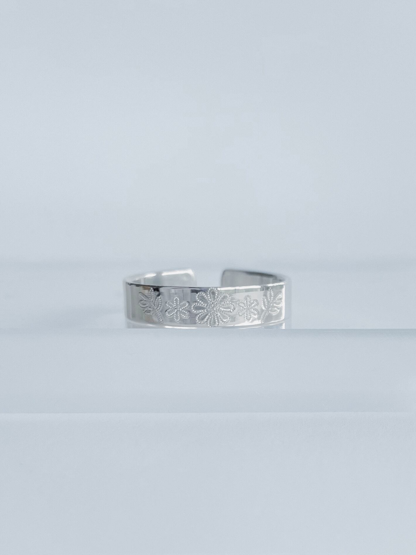 アルミを使ったオリジナルデザインのフラワー刻印風リングです。