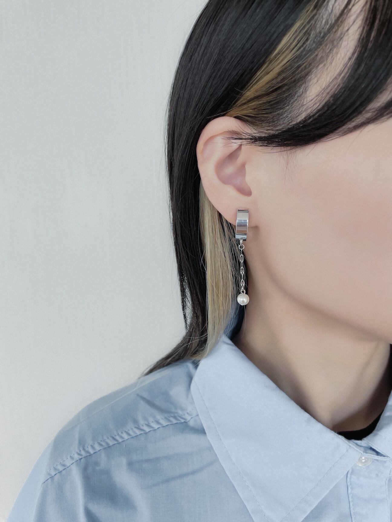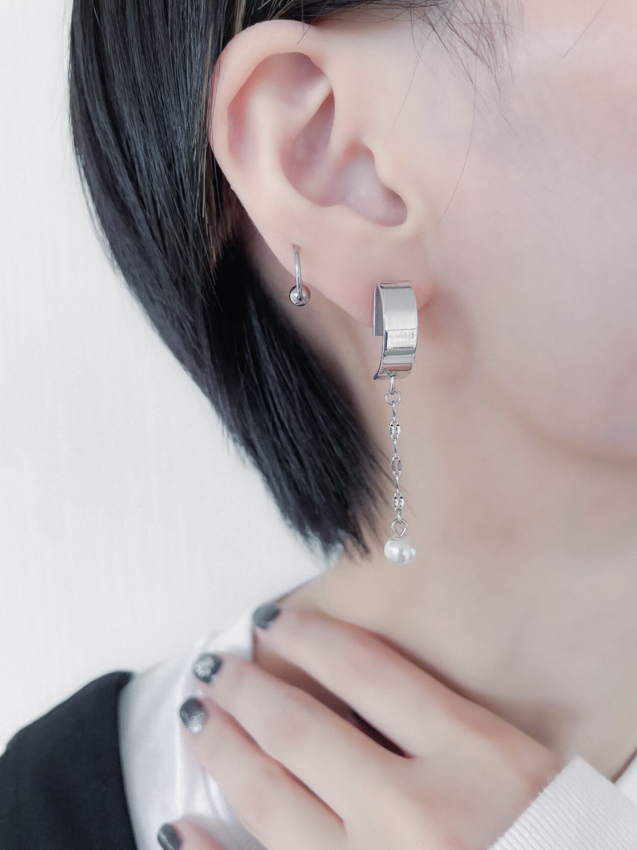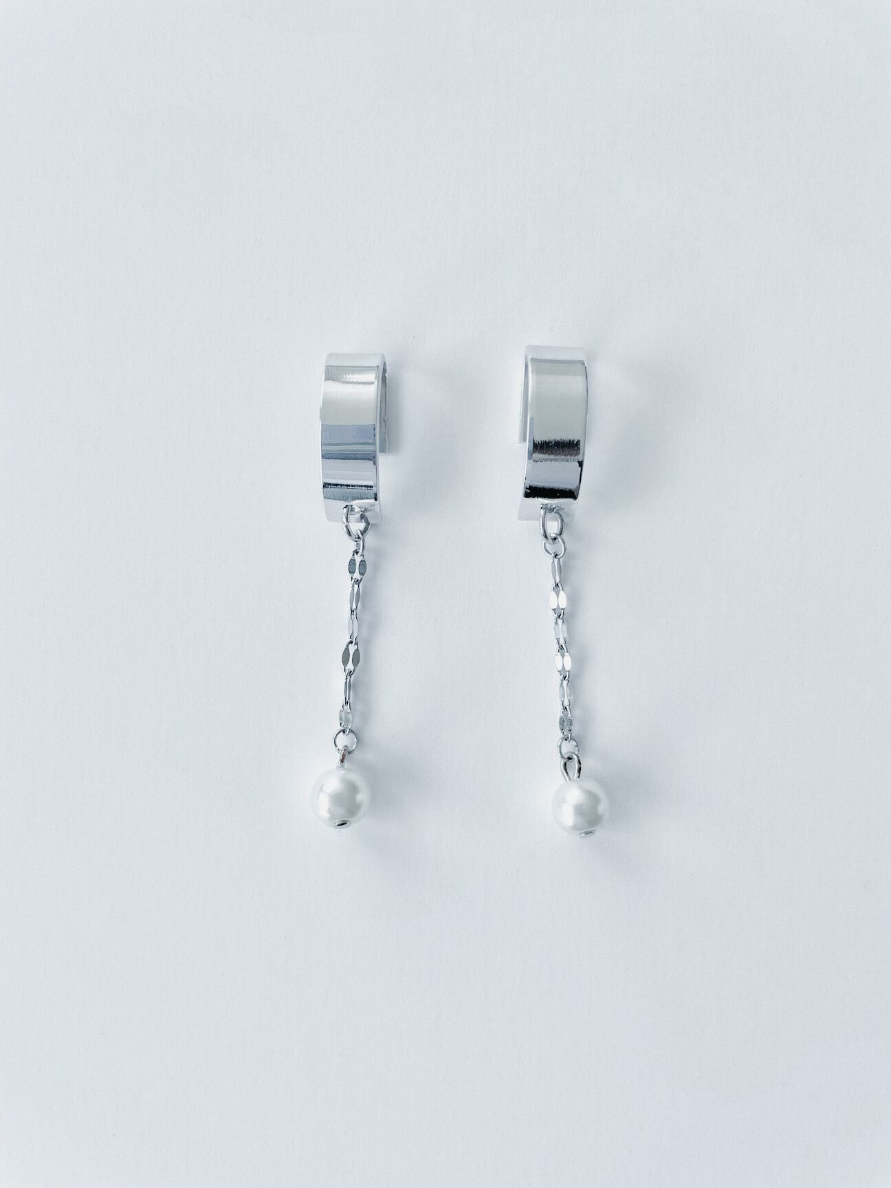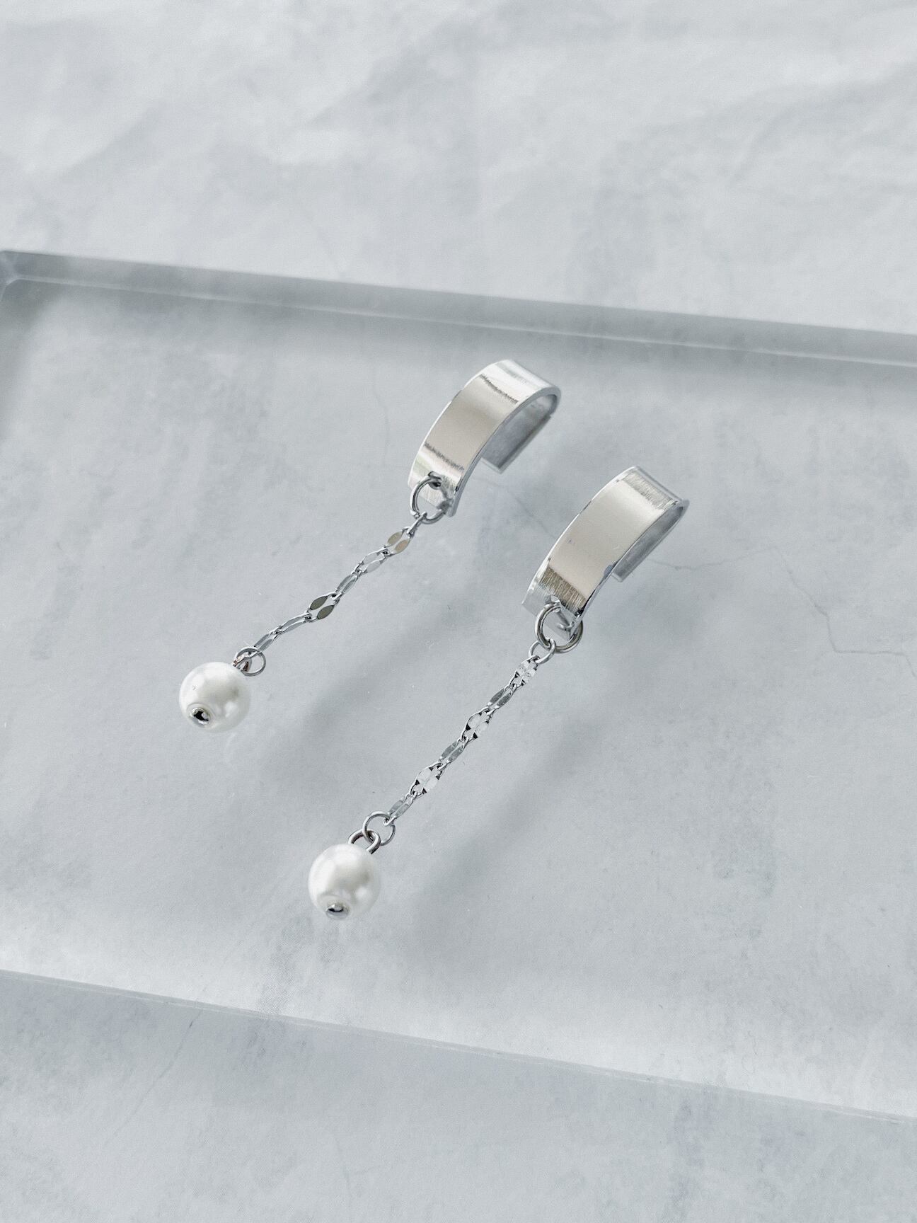 mirror half round × Perl chain ピアス&イヤリング