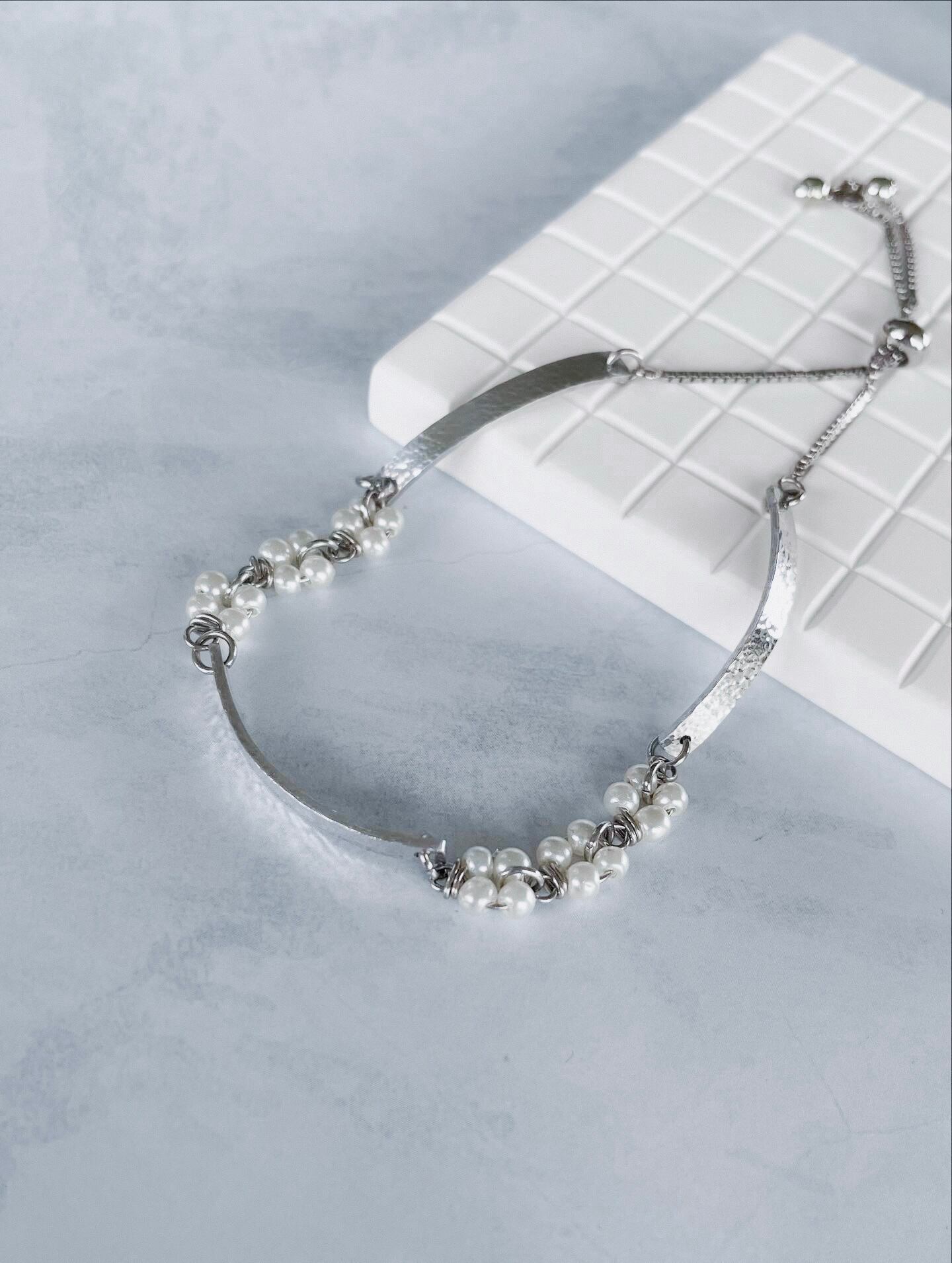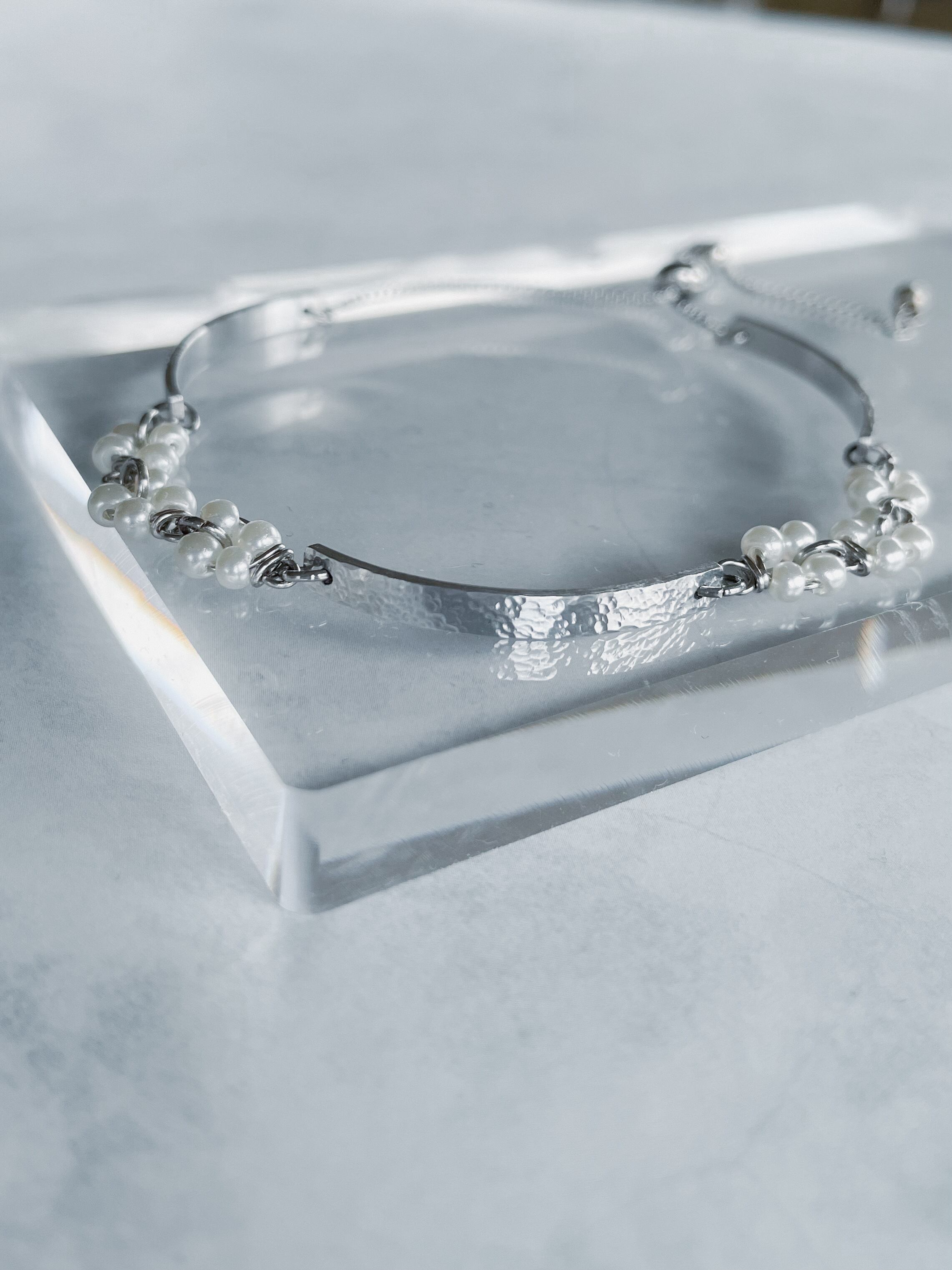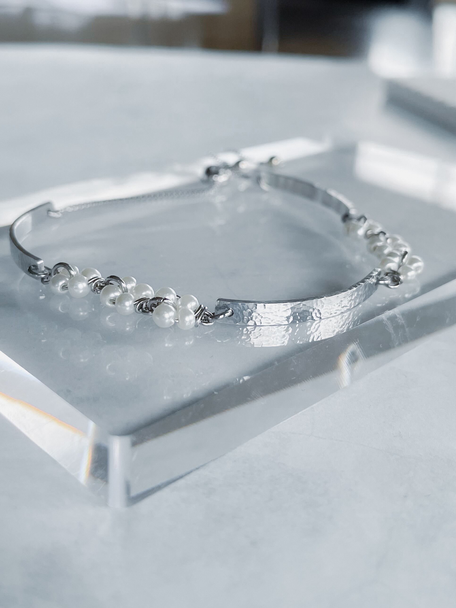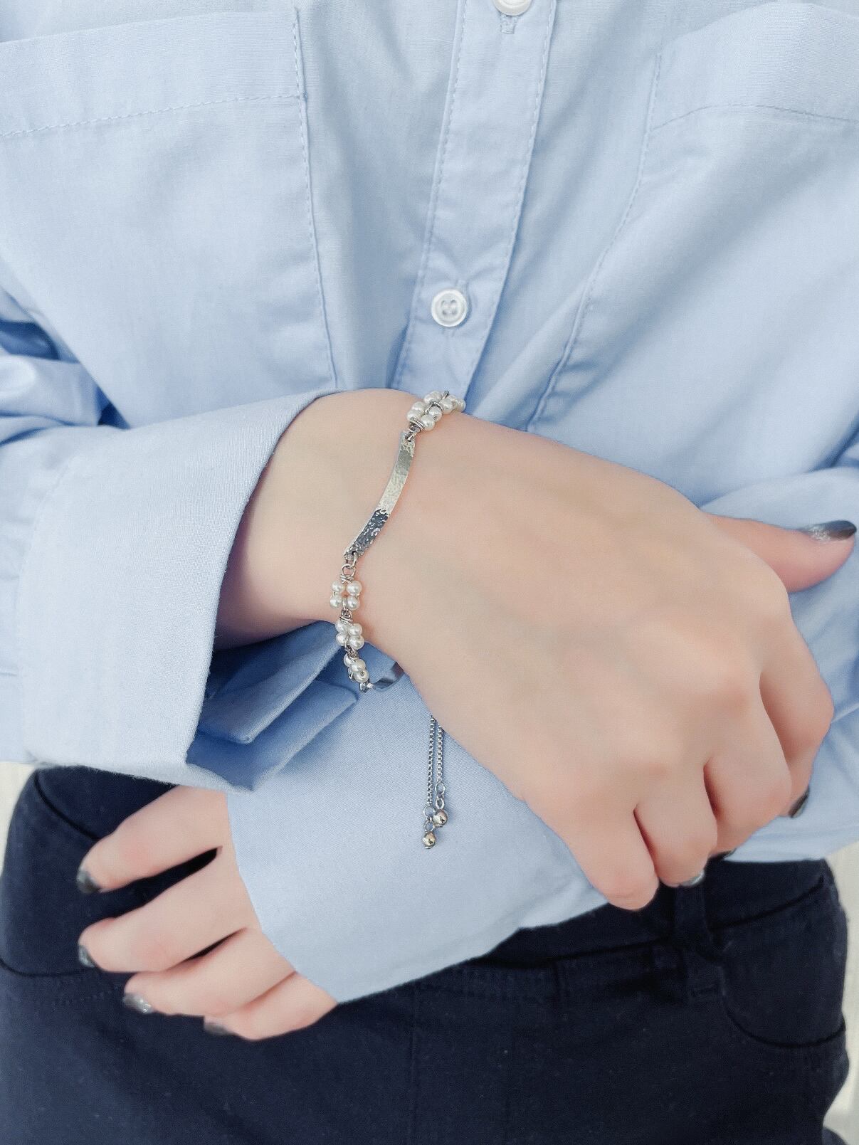 flower perl × plate bracelet <細鎚目テクスチャー>