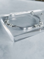 細やかな鎚目の煌めきと連なる小花の組み合わせが柔らかい雰囲気を演出。